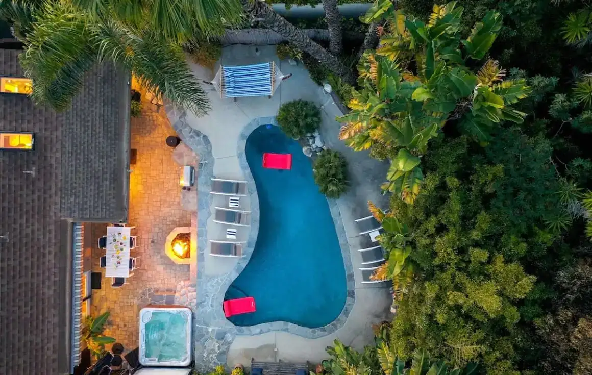 Visualizza su AirbnbOasi di Malibu con pozzo del fuoco, piscina e vista mozzafiato | Il miglior Airbnb con piscina e Jacuzzi