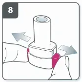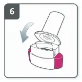 Dopo aver finito di prendere la tua dose giornaliera dell'Arcapta Neohaler, apri nuovamente il bocchino, rimuovi di nuovo la capsula vuota ribaltandola e scartarla. Chiudere l'inalatore e sostituire il cappuccio.