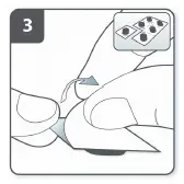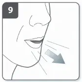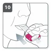 Prima di respirare in posizione il bocchino in bocca e chiudere le labbra attorno al bocchino. Tieni l'inalatore con i pulsanti a sinistra e a destra (non su e giù).
