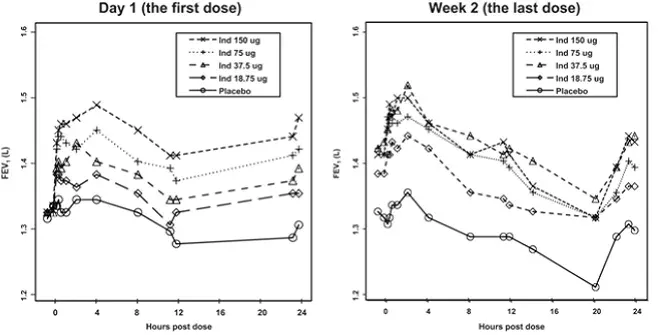 | Indacaterolo 75 mcg una volta al giorno | Placebo | |