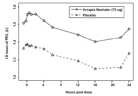 Il dosaggio raccomandato di Arcapta Neohaler è il contenuto di una capsula Arcapta da 75 mcg una volta al giorno per inalazione orale (allo stesso tempo del giorno) usando l'inalatore Neohaler.