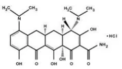 La formula molecolare della minociclina cloridrato è C 23 H 27 N 3 O 7 · HCl e il peso molecolare è 493,94. La formula strutturale della minociclina cloridrato è: