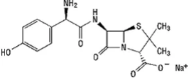 La formula molecolare di sodio di amoxicillina è C 16 H 18 N 3 Essi 5 S e il peso molecolare è 387,39. Chemically amoxicillin sodium is [2 -[2α5α6β(S*)]]-6-[[Amino(4hydroxyphenyl)acetyl]amino]-33-dimethyl-7-oxo-4-thia-1-azabicyclo[3.2.0]heptane-2carboxylic acid monosodium salt and may be represented structurally as: