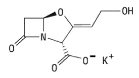 L'acido clavulanico è prodotto dalla fermentazione di Streptomyces clavuligerus . È un βlattam strutturalmente correlato alle penicilline e possiede la capacità di inattivare un'ampia varietà di β-lattamasi bloccando i siti attivi di questi enzimi. L'acido clavulanico è particolarmente attivo contro le β-lattamasi mediate dal plasmide clinicamente importanti spesso responsabili della resistenza ai farmaci trasferiti a penicilline e cefalosporine. La formula molecolare di potassio clavulanato è C 8 H 8 Kno 5 e il peso molecolare è 237,25. Il potassio chimicamente clavulanato è potassio (z)-(2R5R) -3- (2-idrossi etilidene) -7-oxo-4-oxa-1-azabiciclo [3.2.0] -heptano-2-carbossilato e può essere rappresentato strutturalmente come: