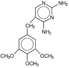 Trimetoprim è pyrimidina 24-diamino-5- (345-trimetossibenzil); La formula molecolare è C 14 H 18 N 4 O 3 . È un composto amaro inodore da bianco a giallo chiaro con un peso molecolare di 290.3 e la seguente formula strutturale: