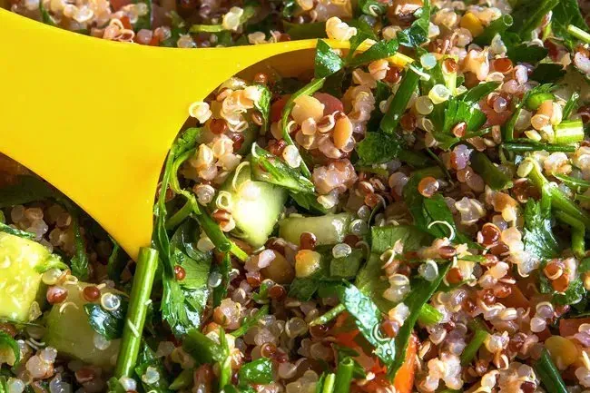 Una volta che sai come pronunciare il nome di questo antico grano ad alto contenuto proteico-Keen-Wah-il resto è facile. Unisci 1 tazza di quinoa secca con 2 tazze d'acqua (o brodo vegetale per un sapore aggiunto) porta a ebollizione e lascia cuocere a fuoco lento per 15 minuti. È un'aggiunta di proteine facile a qualsiasi stufato di insalata o zuppa. Una tazza di quinoa cotta ha 8 grammi di proteine e oltre il 20% del valore giornaliero raccomandato del magnesio fosforo manganese e dell'acido folico.