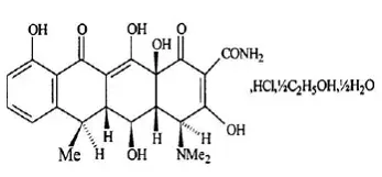 con una formula molecolare di C 22 H 24 N 2 O 8 HCl ½ c 2 H 6 O ½ h 2 O e un peso molecolare di 512,9. The chemical designation for doxycycline hyclate is [4S(4aR5S5aR6R12aS)] -4-(dimethylamino)-144a55a61112a-octahydro-35101212a-pentahydroxy-6methyl-111-deoxonaphthacene-2-carboxamide monohydrochloride compound with ethyl alcohol (2:1) monoidrato. La doxiciclina hyclate è una polvere cristallina gialla solubile in acqua e in soluzioni di idrossidi alcalini e carbonati. La doxiciclina ha un alto grado di solubilità lipidica e una bassa affinità per il legame del calcio. È altamente stabile nel normale siero umano. La doxiciclina non si degraderà in una forma di Epianhydro. Gli ingredienti inattivi nella formulazione della compressa sono: lattosio monoidrato; cellulosa microcristallina; lauril solfato di sodio; cloruro di sodio; talco; lattosio anidro; amido di mais; crospovidone; magnesio stearato; rivestimento polimerico cellulosico.