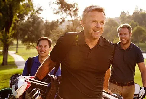 Gran parte del beneficio di questo sport proviene dalla passeggiata: un round medio è di oltre 10000 gradini o circa 5 miglia! Inoltre, il tuo swing usa tutto il tuo corpo e richiede un buon equilibrio e una concentrazione calma. Se porti o tiri i tuoi club, è ancora più un allenamento. Ma anche usare un carrello ne vale la pena. Stai ancora lavorando ai tuoi muscoli e fai passi insieme all'aria fresca e al sollievo dallo stress.