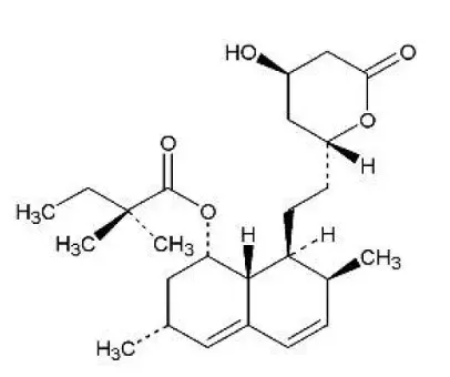 La simvastatina è acido butanoico 22-dimetil-123788A-Exaidro-37-dimetil-8- [2- (tetraidro-4-idrossi-6-oxo-2H-piran-2-il) etil] -1-naftanile ester [1S- [1α3α7β8β (2S*4S*-8aβr]. La formula empirica di Simvastatina è C 25 H 38 O 5 e il suo peso molecolare è 418,57. La sua formula strutturale è: