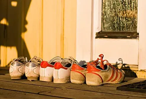 Il piede dell'atleta è un tipo di infezione fungina sui piedi. Si traduce in prurito incrinato e sbucciarsi tra le dita dei piedi. L'infezione è causata da un tipo di tigna che si trova spesso negli spogliatoi di asciugamani e scarpe da piscina. Indossa sempre le scarpe da doccia quando sei in docce in comune o aree in piscina. Lavare e asciugare i piedi accuratamente ogni giorno. Aumenta le scarpe e lasciali asciugare prima di indossarle di nuovo. Metti i calzini puliti ogni giorno.