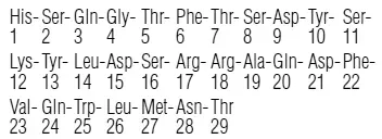 Glucagen (Glucagone) per iniezione is an antihypoglycemic agent E a gastrointestinal motility inhibitor for subcutaneous intramuscular or intravenous use. It is produced by expression of recombinant DNA in a Saccharomyces cerevisiae vettore con successiva purificazione. La struttura chimica del glucagone nel glucagen è identica al glucagone umano e al glucagone estratto dal pancreas di manzo e maiale. Glucagone con la formula empirica di C 153 H 225 N 43 O 49 S e un peso molecolare di 3483 è un polipeptide a catena singola contenente 29 residui di aminoacidi. La struttura del glucagone è: