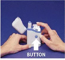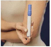 - Non toccare il pulsante blu fino a quando non hai premuto la penna fermamente contro la tua pelle per dare una dose.