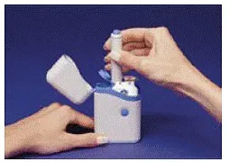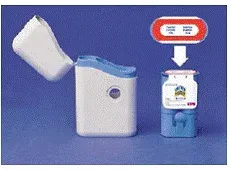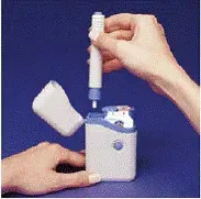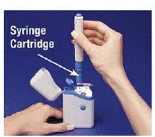 Dopo che sono state utilizzate entrambe le cartucce di siringa, prendi il pacchetto di cartucce fuori dalla custodia. Non farlo reuse O recycle a Syringe Cartridge.
