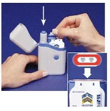 - Usa sempre la cartuccia della siringa contrassegnata A prima di quella marcata B per aiutarti a tenere traccia delle dosi. NON UTILIZZARE SE SEI SEAL è rotto o mancante quando si apri la custodia per la prima volta.