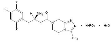 Sitagliptin is an orally-active inhibitor of the dipeptidyl peptidase-4 (DPP-4) enzyme. Sitagliptin phosphate monohydrate drug substance is used to manufacture Janumet XR. Sitagliptin phosphate monohydrate is described chemically as 7-[(3R)-3-amino-1-oxo-4-(245-trifluorophenyl)butyl]-567813 tetrahydro-3-(trifluoromethyl)-124-triazolo[43-α]pyrazine phosphate (1:1) monohydrate with an empirical formula of C 16 H 15 F 6 N 5 OH. 3 Po 4 • H. 2 O e un peso molecolare di 523,32. La formula strutturale è: