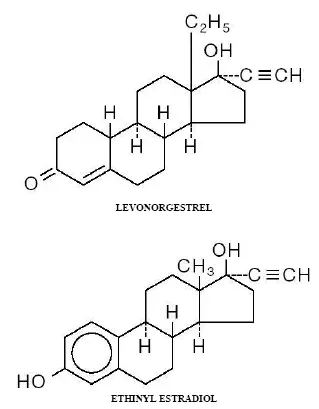 Levoonorgestrel è un progestinico totalmente sintetico con il nome chimico (-)-13-etil-17-idrossi-1819-Dinor- 17α-PREGN-4-EN-20-YN-3-One. Etinil estradiolo è un estrogeno con il nome chimico 19-NOR-17α-Pregna-135 (10) -Trien-20-Yne-317-diolo. Seguono le loro formule strutturali: