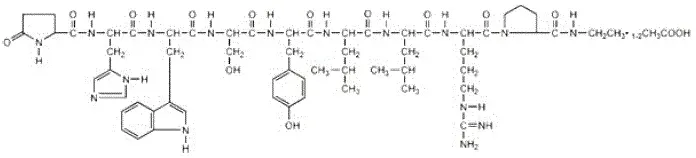 L'acetato di leuprolide è un analogo non appeptide sintetico di ormone di rilascio di gonadotropina naturale (GNRH o LH-RH). L'analogo possiede una potenza maggiore rispetto all'ormone naturale. Il nome chimico è 5-oxo-l-prolil-l-istidil-l-triptofil-l-serosl-l-tirosil-teleucil-l-leucil-l-arginil-n-etil-l-prolinamide acetato (sale) con la seguente formula strutturale: