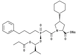 Monopril® (compresse di sodio fosinopril) è il sale di sodio di fosinopril il profarmaco di estere di un inibitore dell'enzima (ACE) di conversione dell'angiotensina (ACE) fosinoprilat. Contiene un gruppo fosfinato in grado di legame specifico al sito attivo dell'enzima di conversione dell'angiotensina. Il sodio di fosinopril è designato chimicamente come: l-prolina 4-cicloexil-1-[[[2-metil-1- (1-ossopropossi) Propossi] (4-fenilbutil) fosfinil] acetil]-sale di sodio trans- .