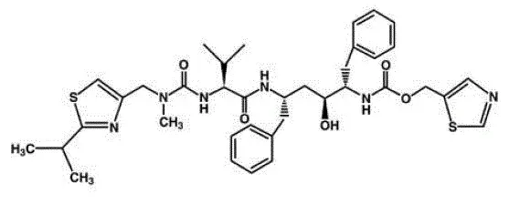 Ritonavir è designato chimicamente come 10-idrossi-2-metil-5- (1-metiletil) -1- [2- (1-metiletil) -4-tiazolil] -36-dioxo-811-bis (fenilmetil) -24712- tetraazatridecan-13-oic acido 5-thiazolilmetilmetiletile [5S- (5r*8r*10r*11r*)]. La sua formula molecolare è C 37 H 48 N 6 O 5 S 2 e il suo peso molecolare è 720,95. Ritonavir ha la seguente formula strutturale: