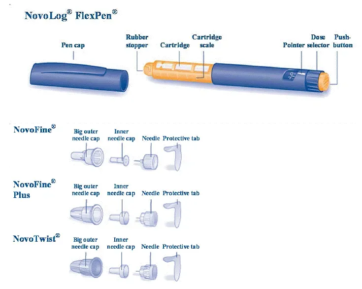 - Novolog Flexpen e Novolog Flextouch con cautela in coloro che possono fare affidamento su clic udibili per comporre la loro dose.