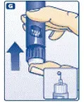 - Continua a testare il tuo dispositivo di consegna di insulina compatibile con cartuccia da 3 ml di Novo Nordisk fino a vedere l'insulina sulla punta dell'ago. Se non vedi ancora una goccia di insulina dopo 6 volte, cambia l'ago e ripeti questo passaggio. Ciò si assicura che le bolle d'aria vengano rimosse e che l'insulina sta attraversando l'ago (vedi Figura G).
