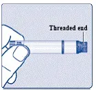 - Novolog dovrebbe apparire chiaro e incolore. Fare non Usa Novolog se è nuvoloso o colorato o se l'estremità filettata è allentata (vedere la Figura B).