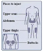 - Cambia (ruotare) i siti di iniezione all'interno dell'area che scegli per ogni dose per ridurre il rischio di ottenere la lipodicolfia (fosse nella pelle o la pelle ispessita) e l'amiloidosi cutanea localizzata (pelle con grumi) nei siti di iniezione. Non utilizzare lo stesso sito di iniezione per ogni iniezione. Non iniettare dove la pelle ha i pozzi è ispessito o ha grumi. Non iniettare dove la pelle è tenera contusa squamosa o dura o in cicatrici o pelle danneggiata.