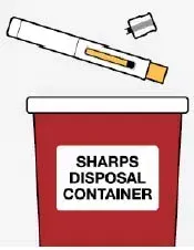 Metti subito il tuo autoiniettore utilizzato e il tappo di ago trasparente in un contenitore di smaltimento tagliente per la FDA subito dopo l'uso.