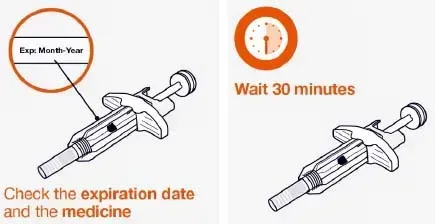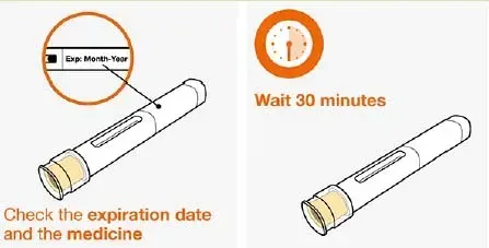 - Assicurati di iniettare entro 5 minuti dopo aver rimosso il cappuccio dell'ago grigio.