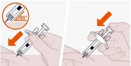 - Spingi lentamente verso il basso sullo stantuffo bianco per iniettare la tua dose completa.
