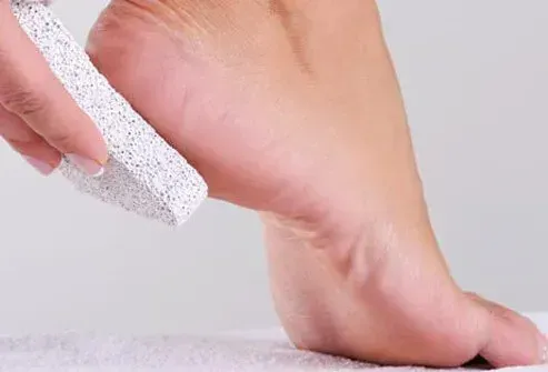 I calli e i semi sono una pelle indurita che può rompersi e ferire se diventano troppo spessi. Durante una pedicure non lasciare che il tecnico del salone usi un rasoio in piedi. I rasoi aumentano il rischio di infezione. A casa immergi i piedi in acqua calda per almeno cinque minuti. Quindi utilizzare una pietra pomice file o scrub esfoliante per rimuovere i calli. Non andare a piedi nudi, può causare calli.