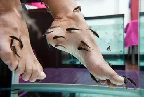 Alcuni saloni lasciano che un certo tipo di pesce sgranocchia i calli dai piedi piuttosto che strofinarli. Alcuni stati hanno vietato queste pedicure di pesce. I lavoratori del salone non possono pulire bene le vasche tra i clienti mentre i pesci sono in essi. E non è possibile pulire il pesce in modo che possano diffondere infezioni da altri clienti.