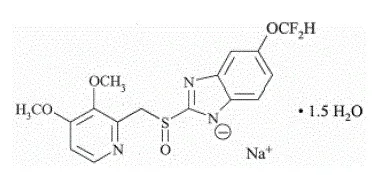 L'ingrediente attivo in protonix (pantoprazolo sodio) per sospensione orale a rilascio ritardato e protonix (pantoprazolo sodio) compresse a rilascio ritardato a un PPI è un benzimidazolo sodio sostituito 5- (difluorometossi -2-[(34-dimetossi-2-piridinil) -1lfinil] -1-1 H -Benzimidazolo sesquiidrato Un composto che inibisce la secrezione di acido gastrico. La sua formula empirica è C 16 H 14 F 2 N 3 Essi 4 S x 1,5 h 2 O con un peso molecolare di 432,4. La formula strutturale è: