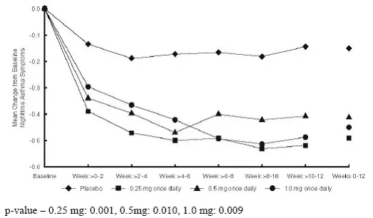 Nei bambini sintomatici che non rispondono alla terapia non steroideale una dose iniziale di 0,25 mg una volta al giorno può essere presa in considerazione. Se il trattamento una volta al giorno non fornisce un controllo adeguato, la dose giornaliera totale dovrebbe essere aumentata e/o somministrata come dose divisa. In tutti i pazienti è auspicabile per il titrato verso il basso alla dose più bassa una volta raggiunta la stabilità dell'asma.