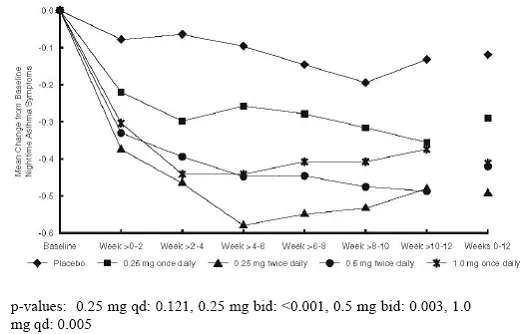 | Broncodilatatori da soli | 0,5 mg di dose totale giornaliera somministrata una volta al giorno o due volte al giorno in dosi divise | 0,5 mg di dose totale giornaliera |