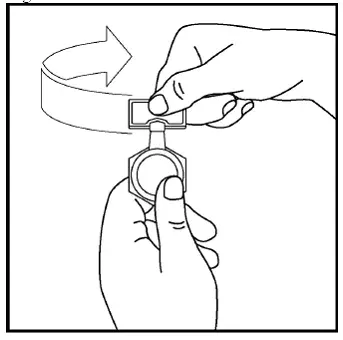 3. Tenere il pulmicort Respules Ampule in posizione verticale senza spremere l'ampola e aprire ruotando la parte superiore come mostrato nella Figura 3.