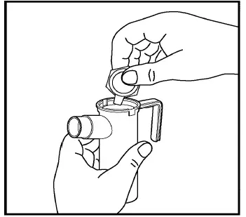 4. Posizionare l'estremità aperta del Pulmicort Respules Ampule nella tazza di nebulizzatore (serbatoio) e spremere lentamente tutto il medicinale dall'ampola nella tazza di medicina del nebulizzatore, come mostrato nella Figura 4. Getta via l'ampola vuota.