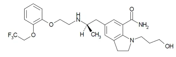 Rapaflo è il nome del marchio per silodosina un antagonista selettivo degli adrenorecettori Alpha-1. Il nome chimico della silodosina è 1- (3-idrossipropil) -5-[(2r) -2-({2- [2- (222trifluoroethoxy) fenossi] etil} amino) propyl] -23-dihydro-1h-indole-7-carboxamide e la formula molecula 25 H 32 F 3 N 3 O 4 con un peso molecolare di 495,53. La formula strutturale della silodosina è: