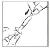 - Rimuovere il tappo di sicurezza spremendo le linguette su ciascun lato del cappuccio e torcendo in senso antiorario (Figura 1).