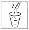 - Svuotare la siringa in un bicchiere di vetro o di plastica contenente almeno 2 once (1/4 di tazza 60 ml) di acqua o succo d'arancia mescolando vigorosamente per 1 minuto e bevi subito (Figura 7).