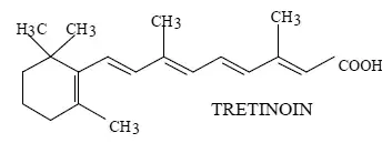 Renova (crema di tretinoina) lo 0,05% contiene il ingrediente attivo Tretinoina in una base di crema. La tretinoina è una polvere cristallina da giallo a arancione chiaro con un odore floreale caratteristico. La tretinoina è solubile in dimetilsolfido leggermente solubile in polietilenglicole 400 ottanolo e etanolo al 100%. È praticamente insolubile in acqua e olio minerale ed è insolubile nella glicerina. Il nome chimico per la tretinoina è (All-E) -37-Dimetil-9- (266-Trimetil-1-Cyclohexen-1-il) -2468-nonatetraenoico. La tretinoina è anche definita trans -retinoico e ha un peso molecolare di 300,44. La formula strutturale è rappresentata di seguito.