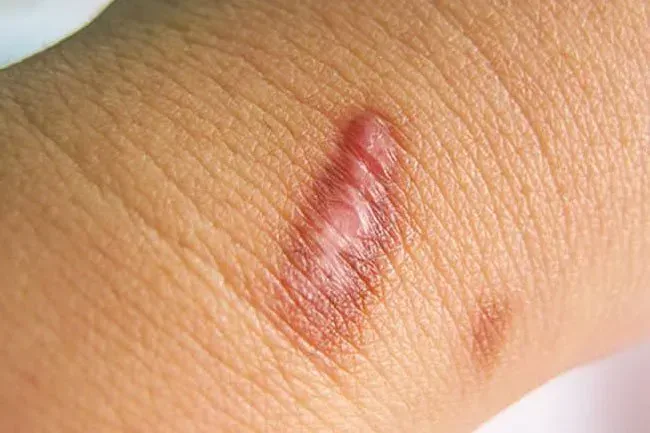 In alcune persone il tessuto cicatriziale che si forma dopo un infortunio diventa sempre più grande e si forma rosso e allevava tumuli chiamati Keloids. Circa il 10% delle persone li ottiene. Si può iniziare da un lieve lesione alla pelle; Un tatuaggio per trafitto dell'orecchio o persino un morso di insetto. Possono essere pruriginosi e dolorosi. I colpi di corticosteroidi per appiattire la cicatrice sono la prima strada del trattamento.