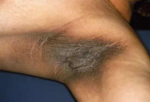 Puoi provare a strofinare queste macchie di pelle vellutate scure spesse scure, specialmente se prurito e hanno un cattivo odore. Ma non funzionerà. I gomiti le ginocchia e le ascelle sono luoghi tipici per ottenerle. La condizione non ti danneggerà ma può essere un segno di altri problemi come i problemi ormonali del diabete dell'obesità una reazione di farmaci o persino il cancro. Parla con il tuo medico.