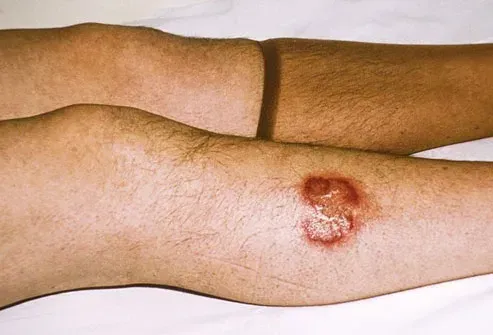 Piccoli macchie rosse rialzate - di solito sugli stinchi - crescono lentamente in patch più piatti più grandi. Questi hanno un bordo rosso e un centro giallastro lucido e probabilmente non andranno via. La pelle è sottile e può dividersi facilmente per formare piaghe a guarigione lente chiamate ulcere che potrebbero portare al cancro della pelle. Le persone che ottengono questa condizione probabilmente hanno il diabete o lo avranno presto. Il medico può attendere il trattamento se non hai ancora ulcere.