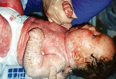 I bambini con la malattia possono nascere con una pelle rossa dall'aspetto grezzo che è spessa in luoghi si fermano facilmente e si infiamma. Scaline dure spesse si formano in file sulla pelle, specialmente attorno alle pieghe delle articolazioni. Un test genetico può dire con certezza se hai la malattia che prende il nome dalla parola greca per pesce. Il trattamento non è facile. La rimozione delle scale lascia spesso la pelle fragile e soggetta a infezione.