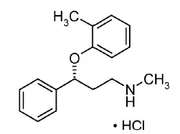 Strattera ® (atomoxetina) è una noradrenalina selettiva Reuppake inibitore. L'atomoxetina HCl è l'isomero R (-) determinato dalla diffrazione dei raggi X. La designazione chimica è (-)- N -Metil-3-fenil-3- ( o -tolilossi) -propilammina cloridrato. La formula molecolare è C 17 H 21 NO • HCL che corrisponde a un peso molecolare di 291,82. La struttura chimica è: