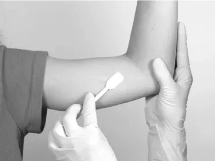 Tampona l'area di inserimento con antisettico topico, quindi sovrappongono al fenestrato Drape da campo sterile fornito in modo che l'apertura sia sul sito di inserimento (per chiarezza dell'illustrazione le seguenti immagini non mostrano il drappeggio).