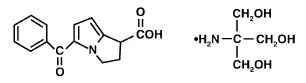 Toradol (ketOolac tromethamine) È a member of the pyrrolo-pyrrole group of nonsteroidal anti-inflammatOy drugs (FANSEs). The chemical name fO ketOolac tromethamine È (±)-5-benzoyl-23-dihydro-1H-pyrrolizine-1-carboxylic acid compound with 2-amino-2-(hydroxymethyl)-13-propanediol (1:1) E the chemical structure È: