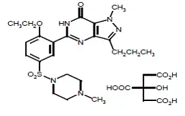 Il citrato di sildenafil è designato chimicamente come 1-[[3- (67-diidro-1-metil-7-oxo-3-propil-1h-pirazolo [43d] pirimidina-5-il) -4-ethossifenil] solfonil] -4-metilpiperazina citrata e ha la seguente struttura strutturale: