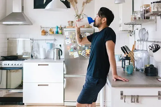 Aggiungi un po 'di cremosità non artificiale al tuo frullato post-allenamento con una tazza di latte di mandorle.